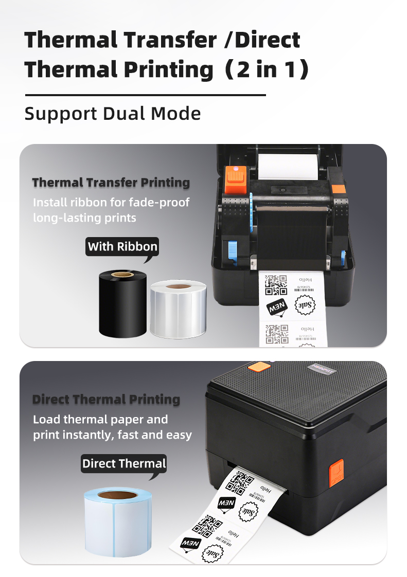 Many high-end commercial and industrial models act as "Hybrid" machines. For example, the Hoin thermal printer series (such as the 4-inch HOP-HQ490) supports both Thermal Transfer and Direct Thermal modes. This allows you to use ribbons for durable labels or go ribbon-free for standard receipts, providing the ultimate flexibility for your business.